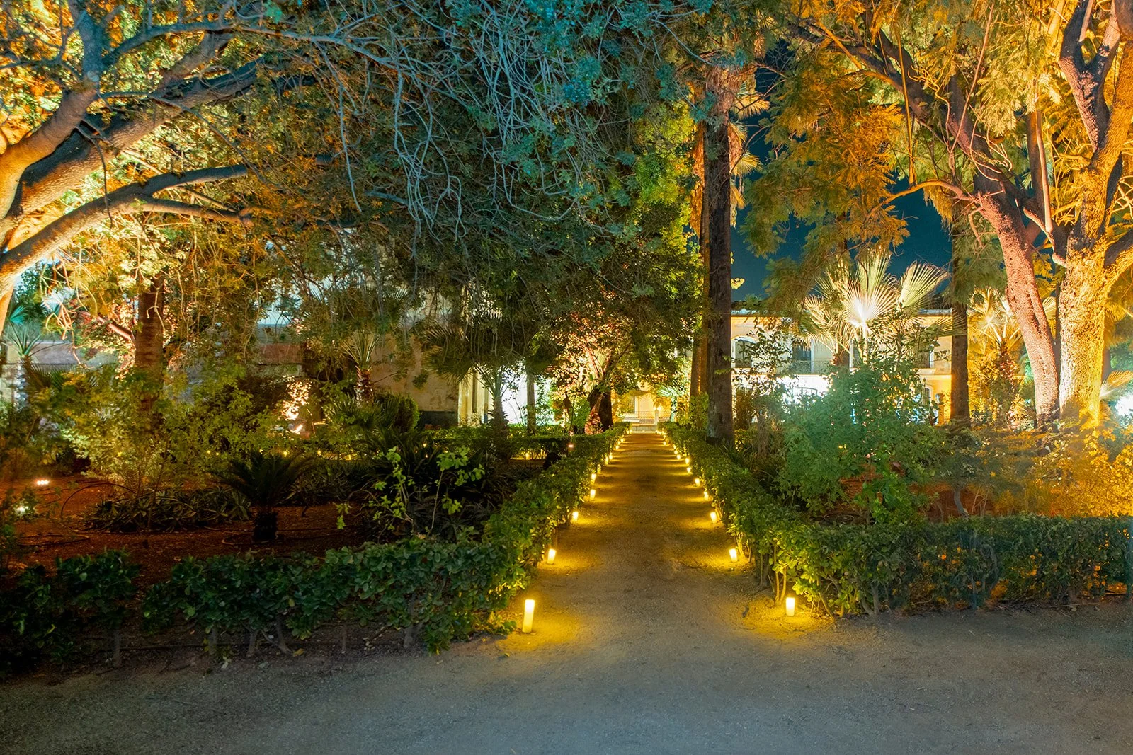 Un jardín formal a la francesa, incluye piscina, fuentes, glorietas, avenidas, pergola y más. Se pueden organizar cenas, discotecas o todo tipo de fiestas.
