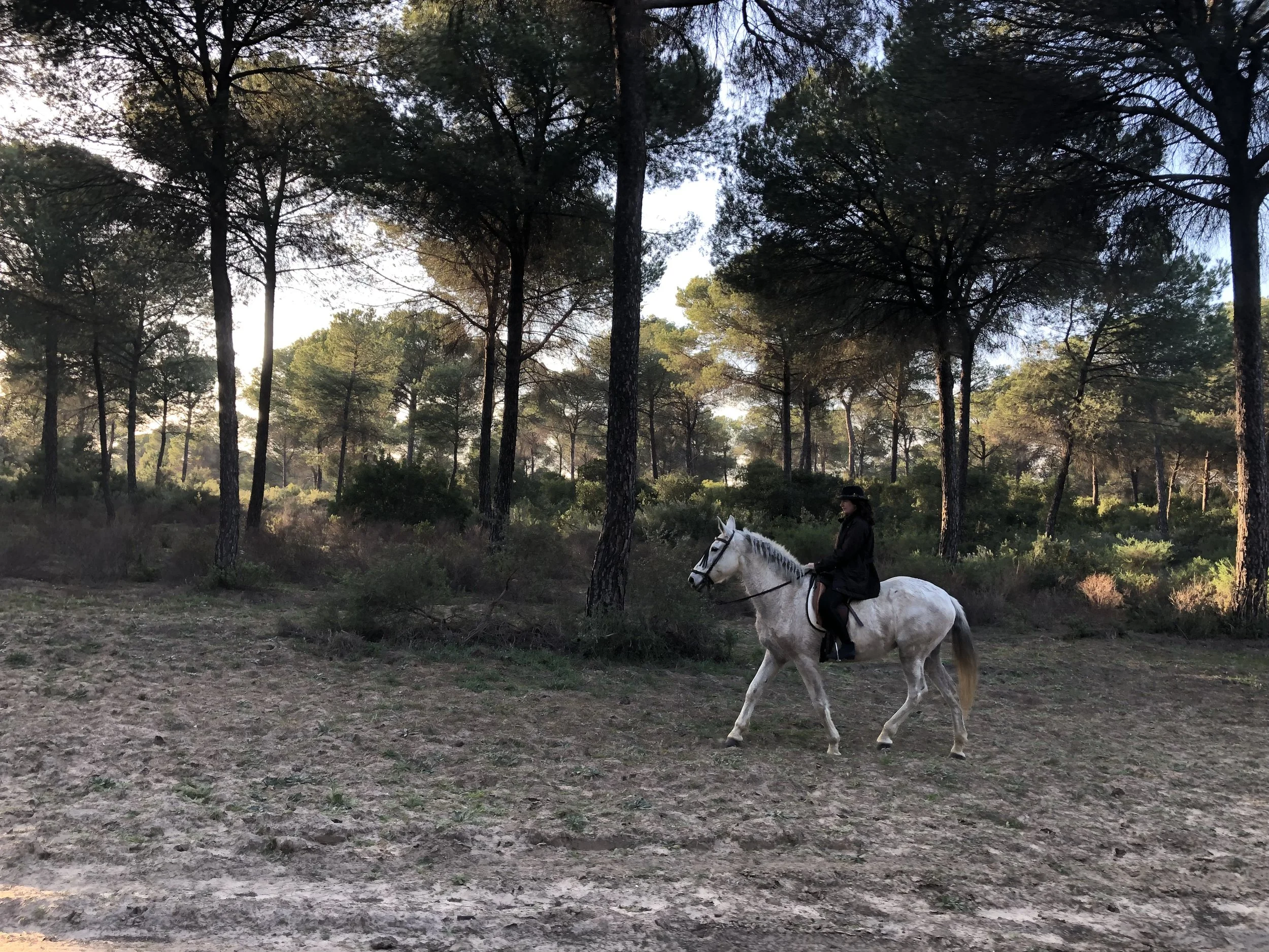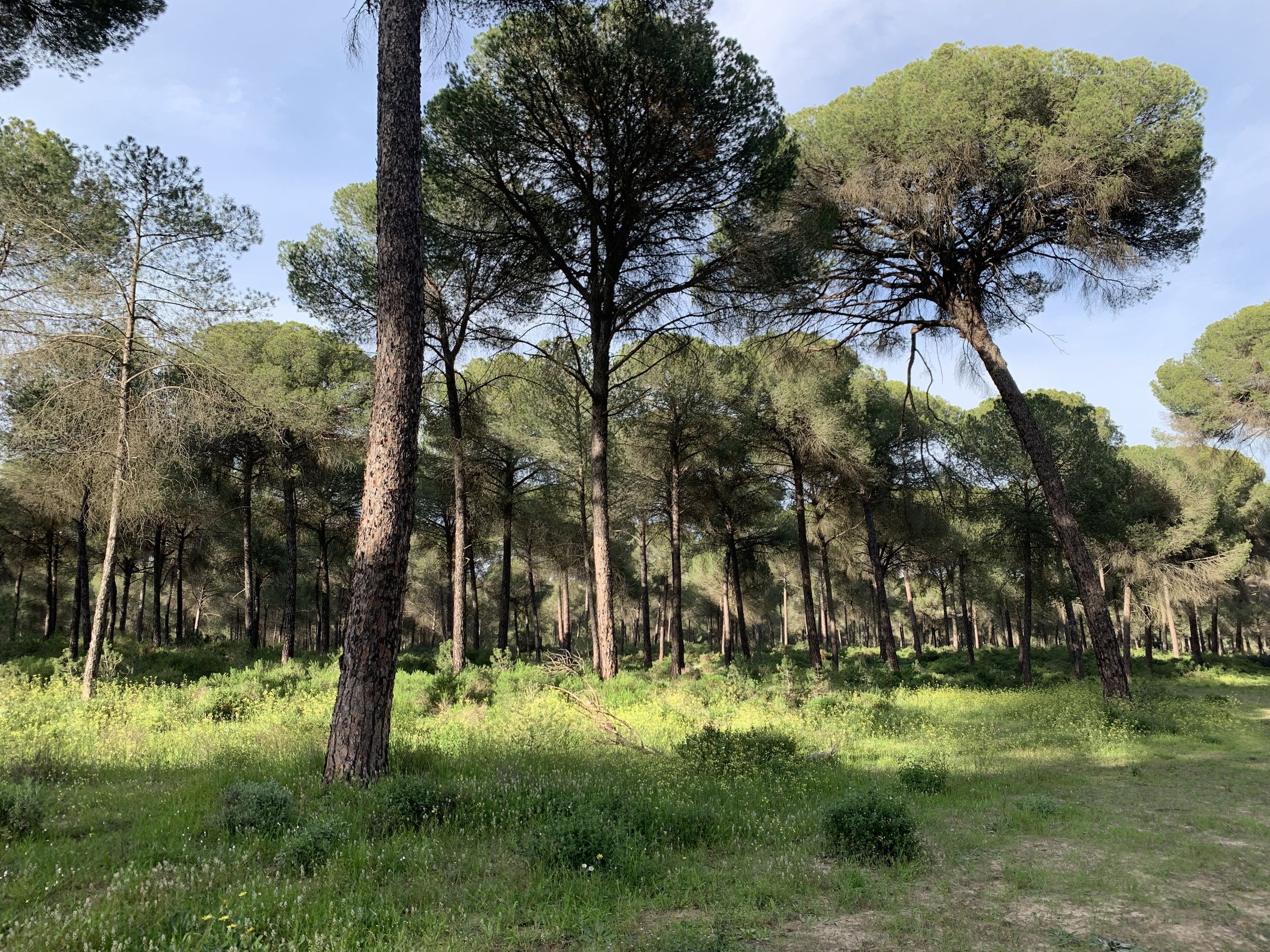 Casi 1000 hectareas de dehesa andaluza con el inicio de la Raya Real. Pinos, alcornoques, naturaleza y armonía. Ideal para paseos a pie o a caballo, recrear el Camino del Rocio y más.
